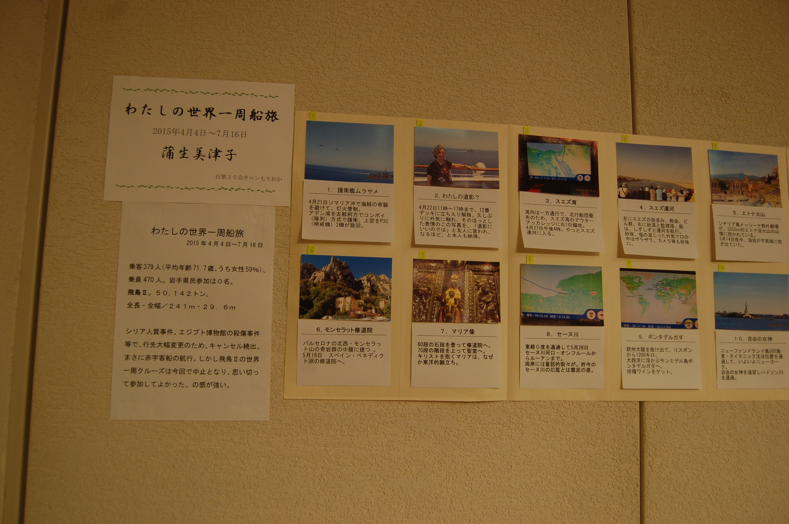 それそれ2点ずつ出展した。藤原きぬ子さんも絵手紙他を展示した。さらに蒲生さんがヨーロッ