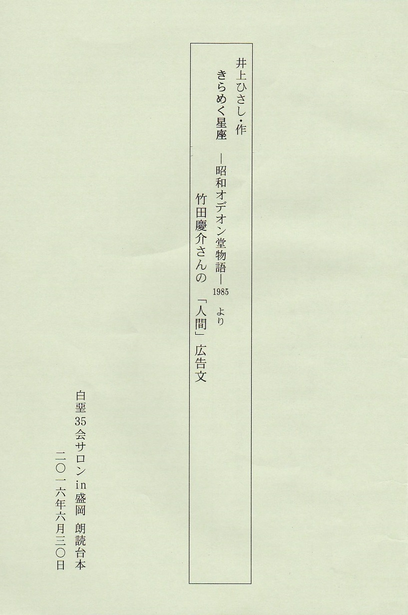 かくして、俄かづくりだったが朗読集団白堊35会の演目は無事に幕を閉じた。 ..