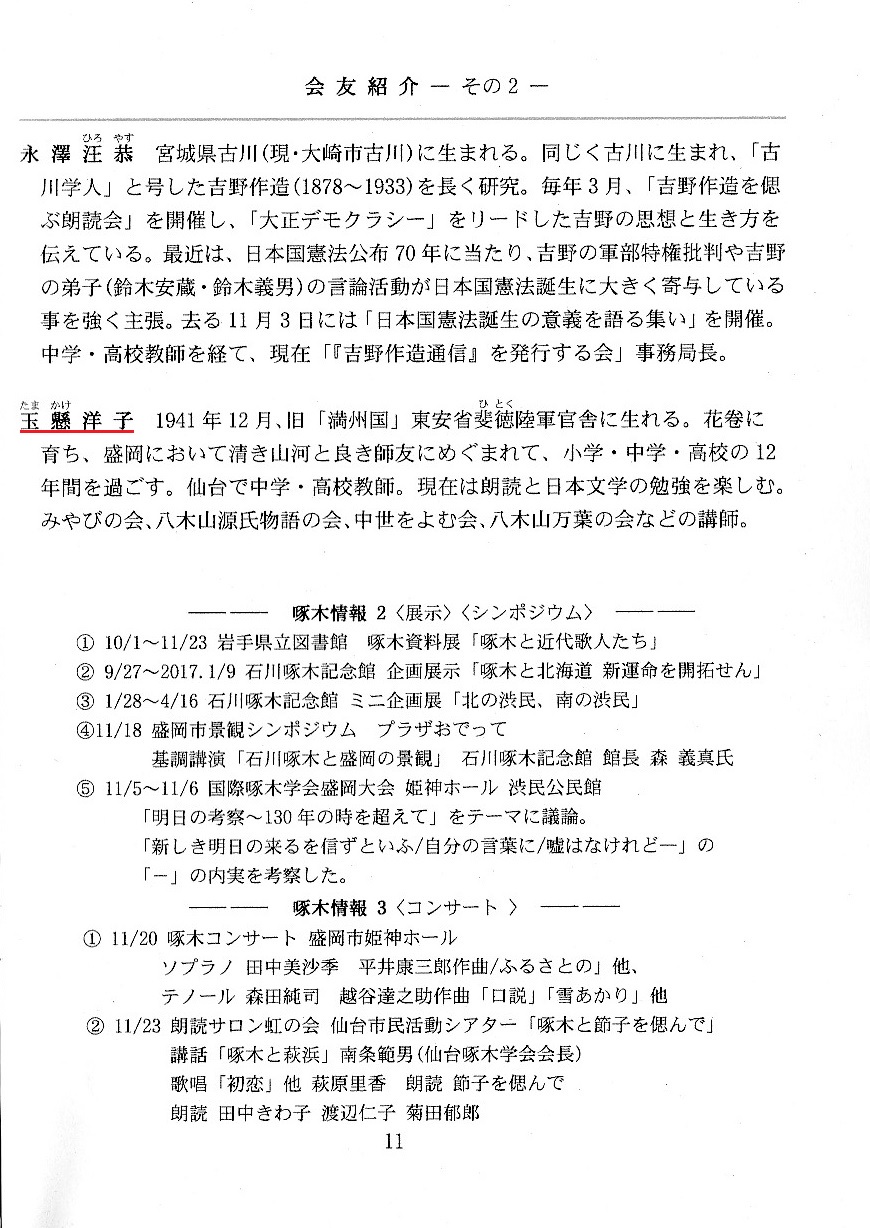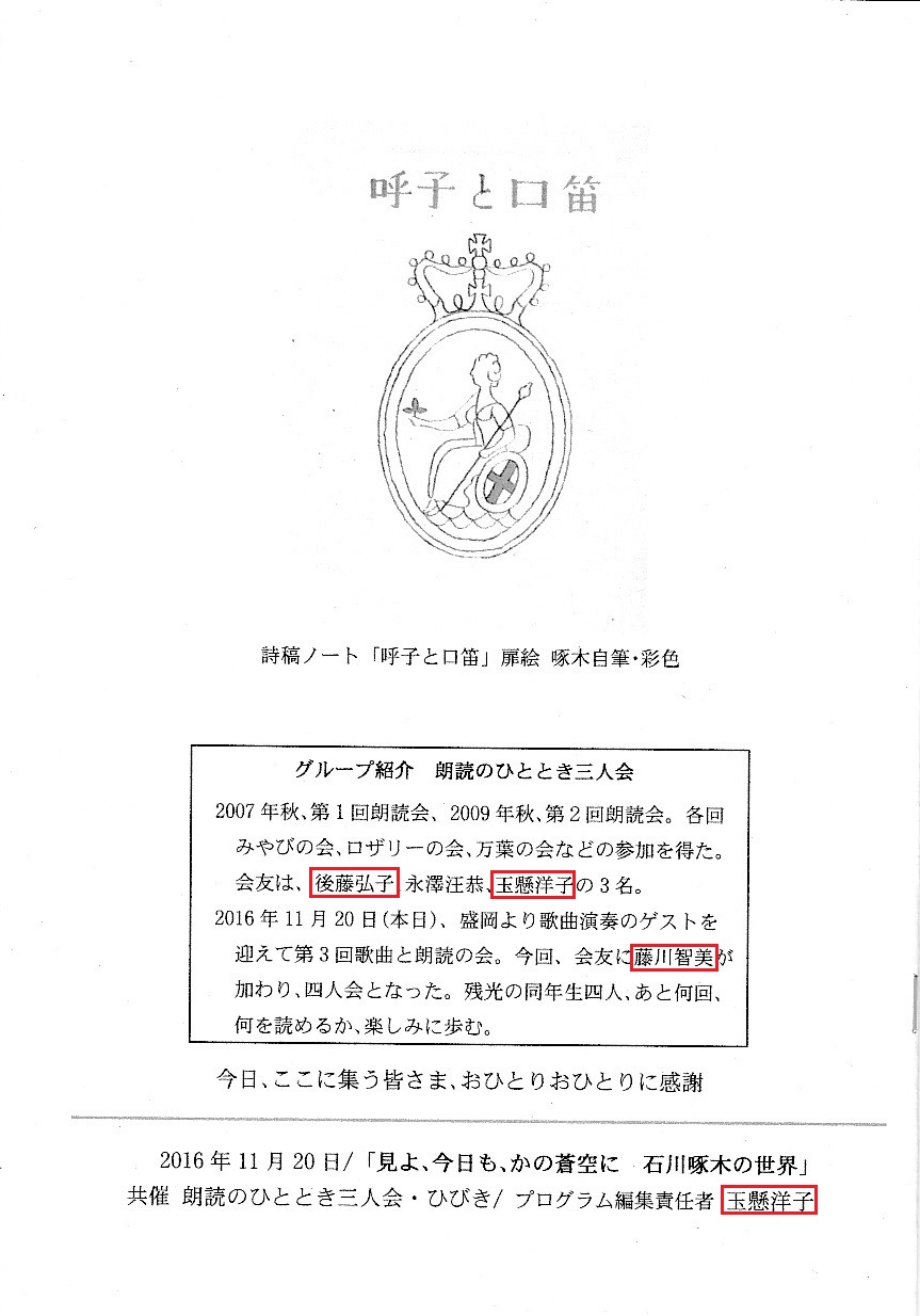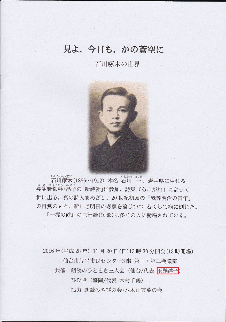白堊三五会『石川啄木 朗読会』by玉懸洋子