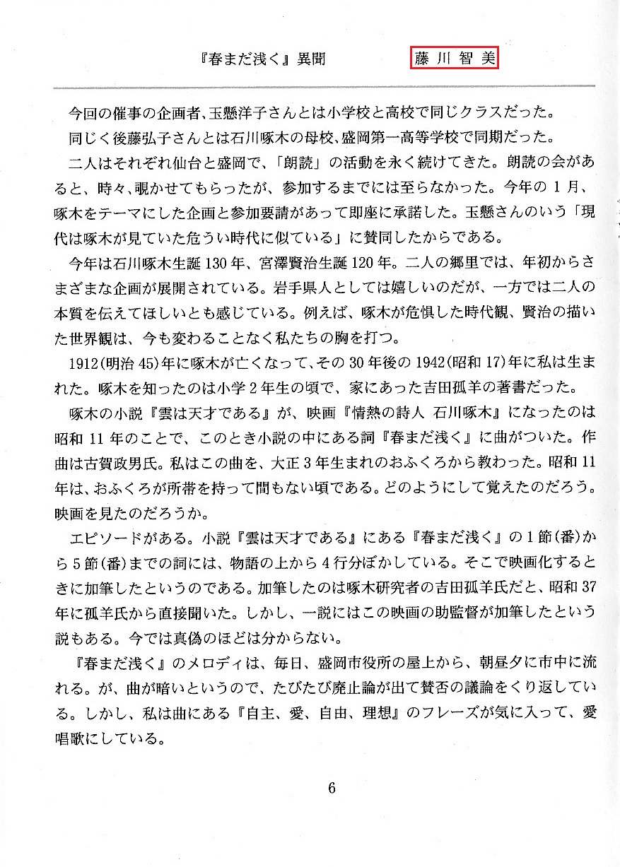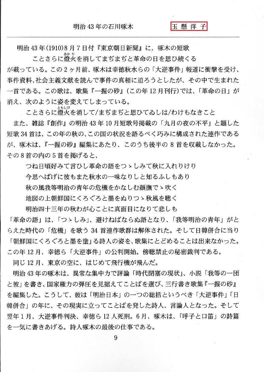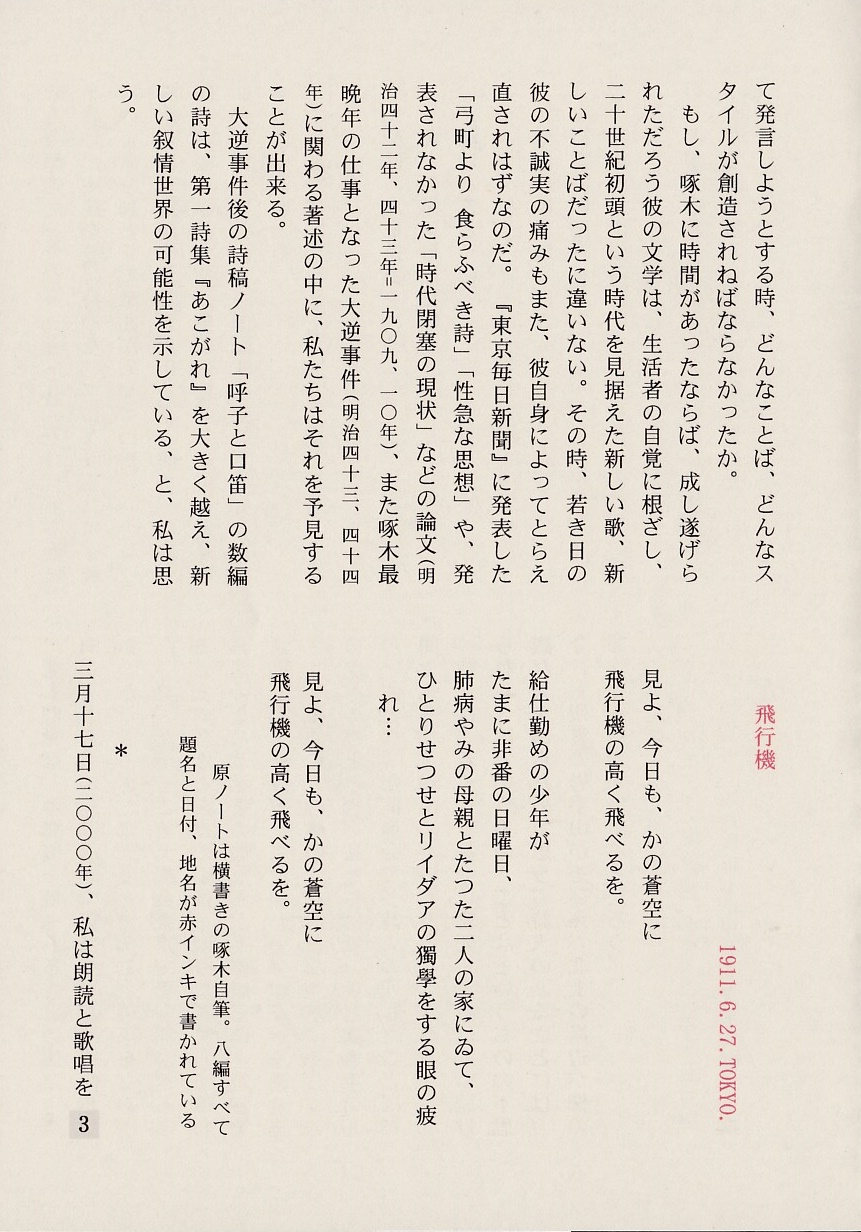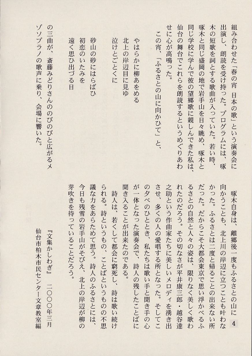 白堊三五会『石川啄木 朗読会』by玉懸洋子